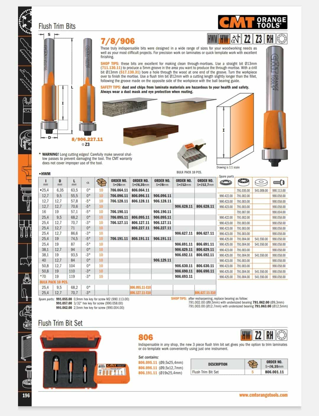 Freza CMT pentru conturat.coada 6mm.cod.706.191.11