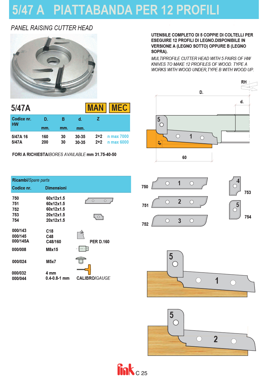 Freza profesională multiprofil pentru tăblii FINK 5/47A 16,interior 35mm
