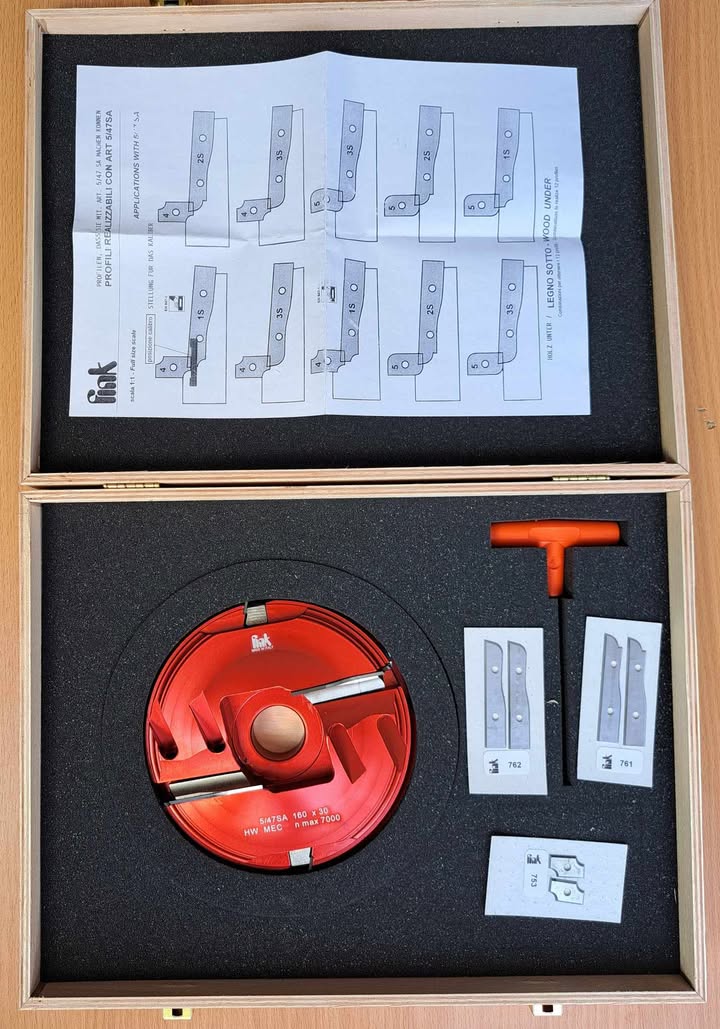 Cu această freză profesională pentru tăblii se pot efectua 12 profile diferite combinînd cele 5 seturi de profile aflate în dotare