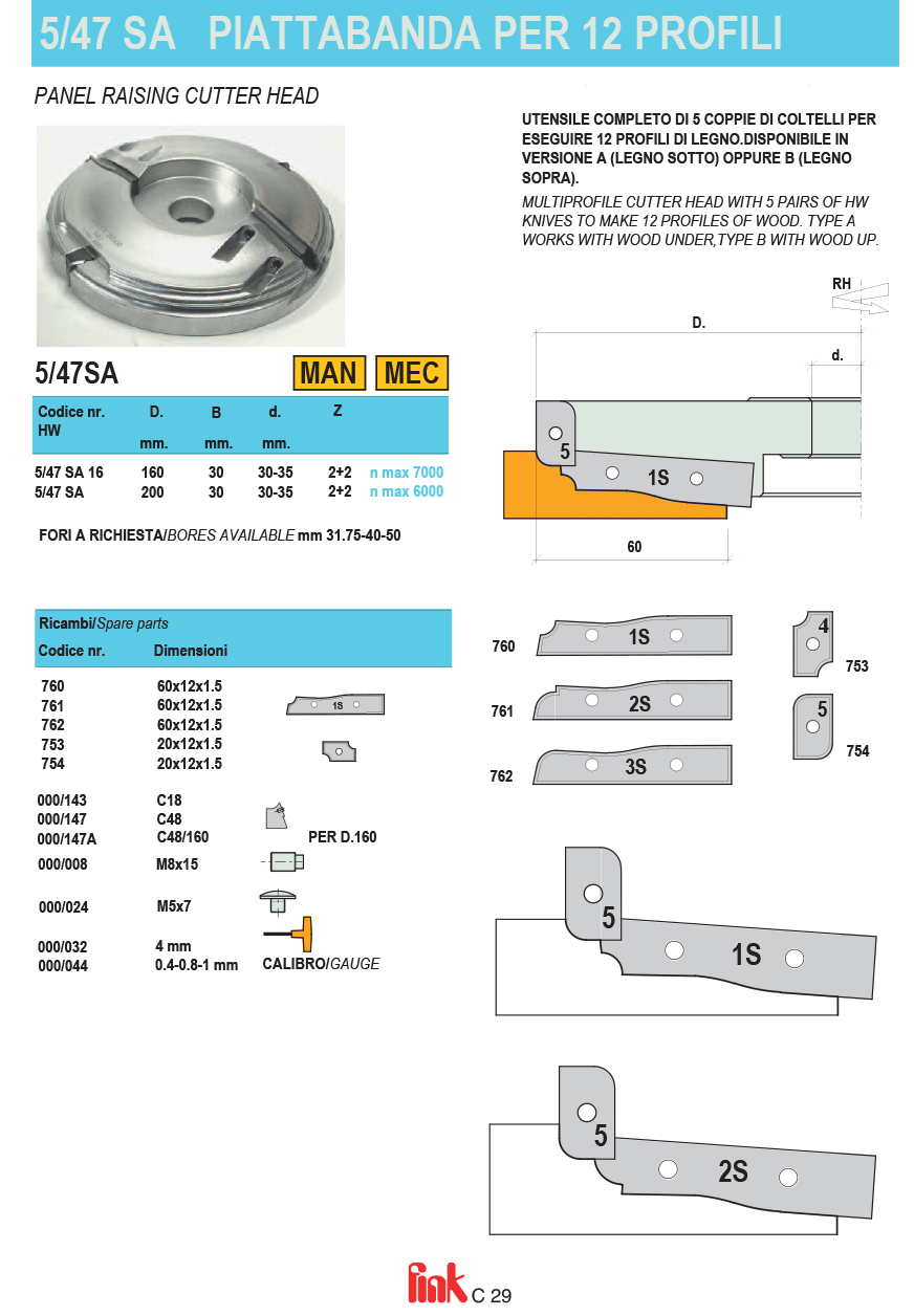 Freza profesională multiprofil pentru tăblii FINK 5/47SA 16,alezaj 30mm.