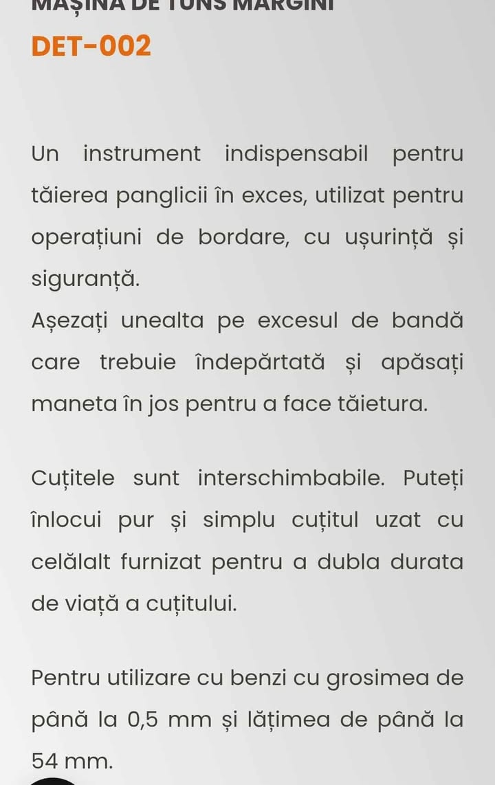 Ghilotina CMT pentru retezat folie cant.cod.DET-002