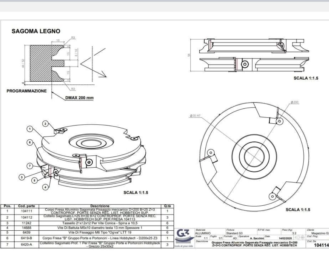 -diametru exterior a frezelor pentru contra profil=200mm.
