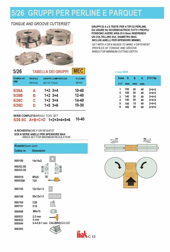 Grup de freze profesionale pentru lambriuri,cod.5/26D