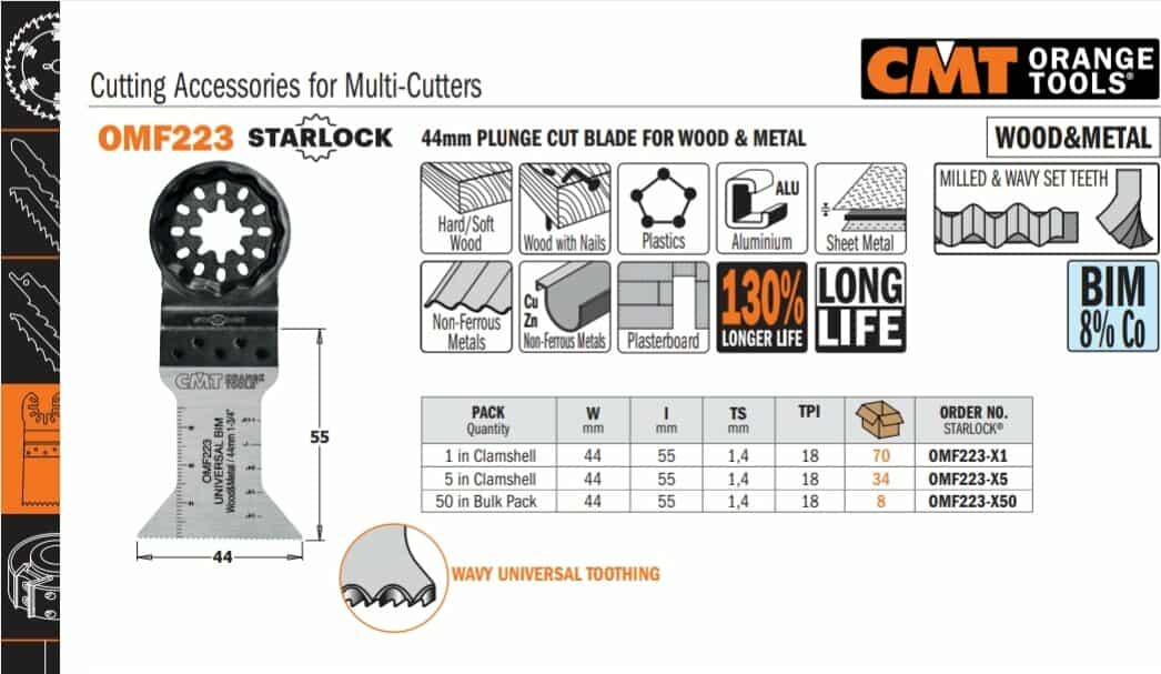Lama CMT pentru mașina multifuncționalăcu priderea STARLOCK.cod.OMF223-X1